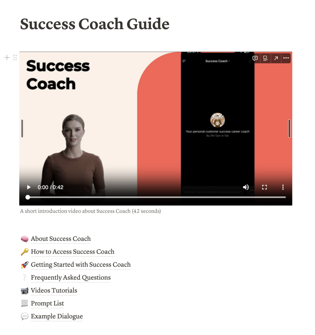 This guide contains information to maximize your potential with Success Coach. It includes an FAQ, video tutorials, prompt lists and more.